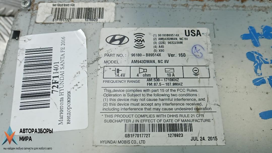 ![магнитола Hyundai Santa Fe 3 поколение (DM) [рестайлинг] 2015, 3.3 л., бензин, АКПП, внедорожник 5 дв., 96180B89514X - фото №2](https://st.razbor-mir.ru/gallery/version/car-part/377689/5685422/preview.jpg)