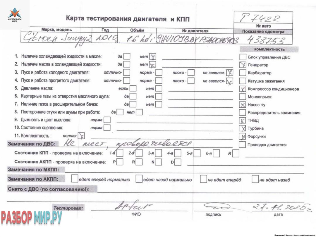 Двигатель (ДВС) Citroen Jumpy 2 2010