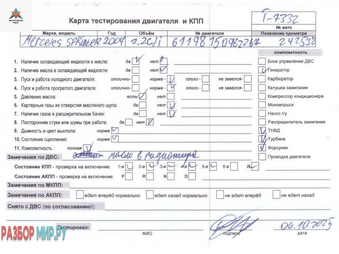 | Номер запчасти | 611981, OM611.981, OM611 |