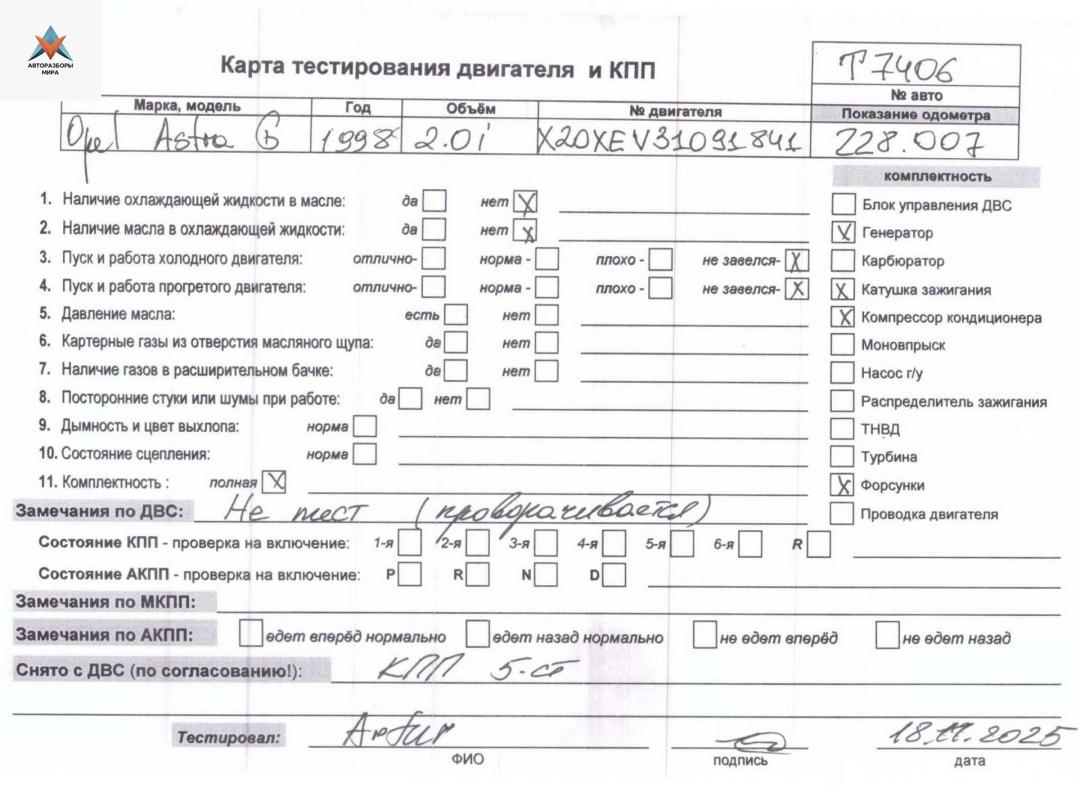 Двигатель (ДВС) Opel Astra G 1999