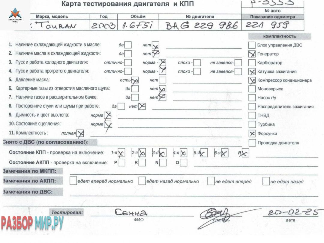 BAG 229986 (цена без навесного), Внимание! Запчасть разукомплектована. Сняты запчасти: Теплообменник, Трубка ТНВД, Катушка зажигания, Патрубок отопителя (печки), Маховик, Катушка зажигания, Форсунка топливная, Патрубок радиатора, Форсунка топливная, Катушка зажигания, Катушка зажигания, Заслонка дроссельная, ТНВД, Генератор, Трубка топливная, Компрессор кондиционера, Датчик абсолютного давления, Коллектор выпускной, Рампа (рейка) топливная