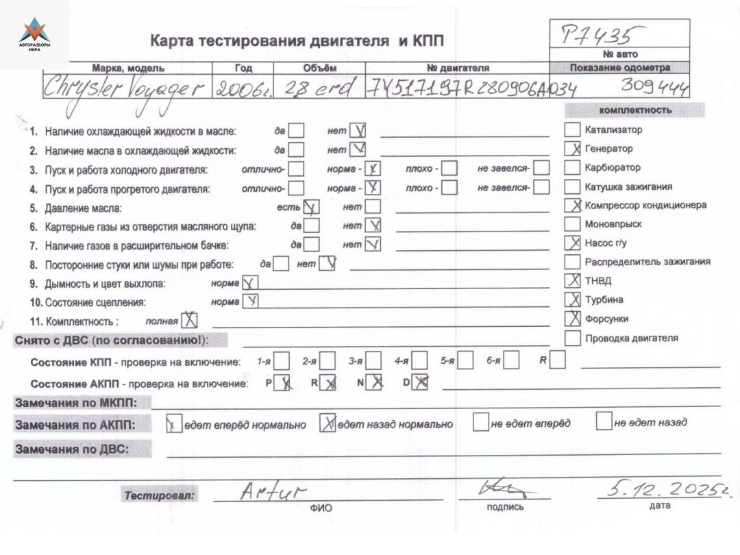 Другие запчасти Chrysler Voyager 5 поколение