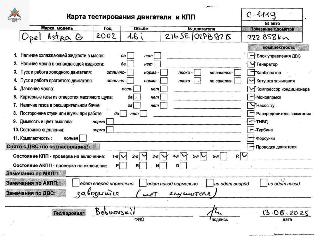 Двигатель (ДВС) Opel Astra G 2002