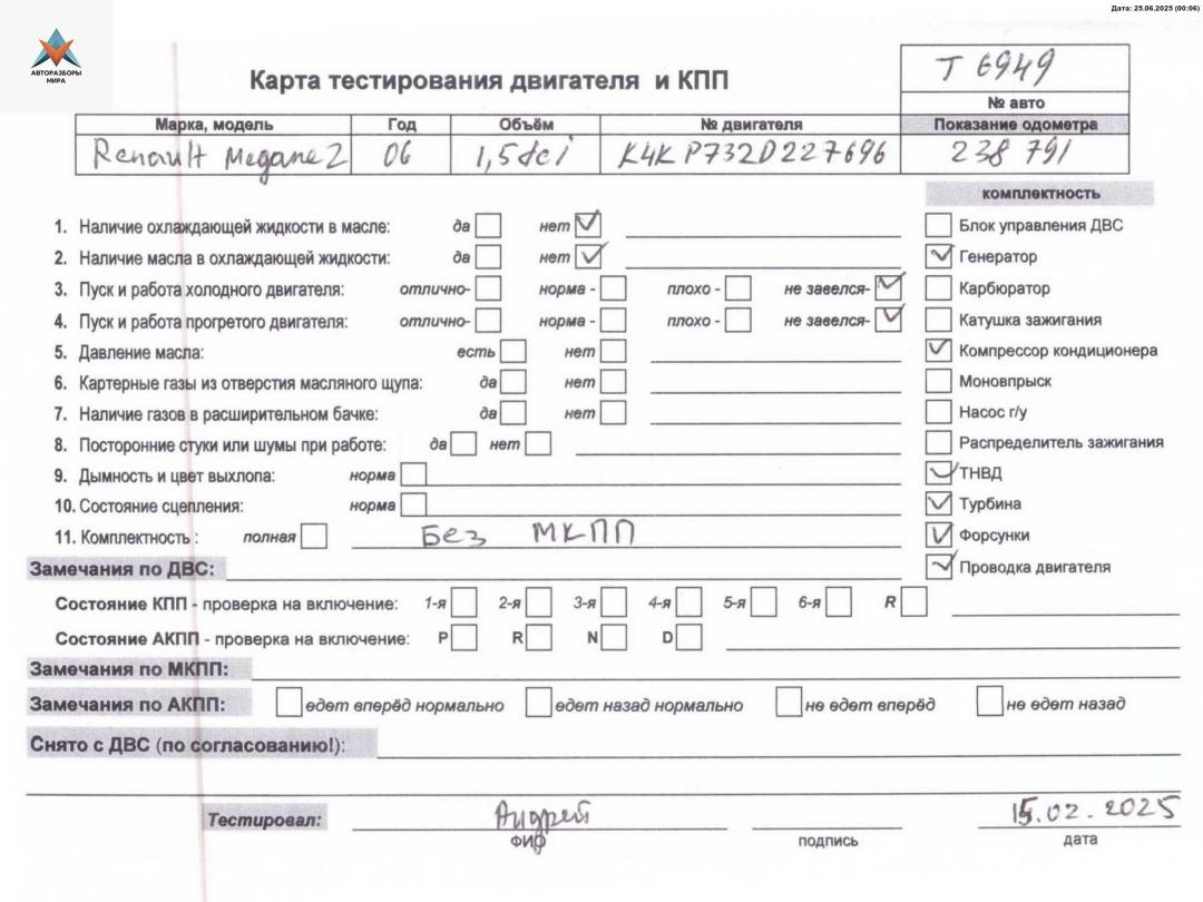 ![двигатель Renault Megane 2 поколение [рестайлинг] 2006, 1.5 л., дизель, МКПП, K9K732 - фото №5](https://st.razbor-mir.ru/gallery/version/car-part/3224489/6634131/preview.jpg)