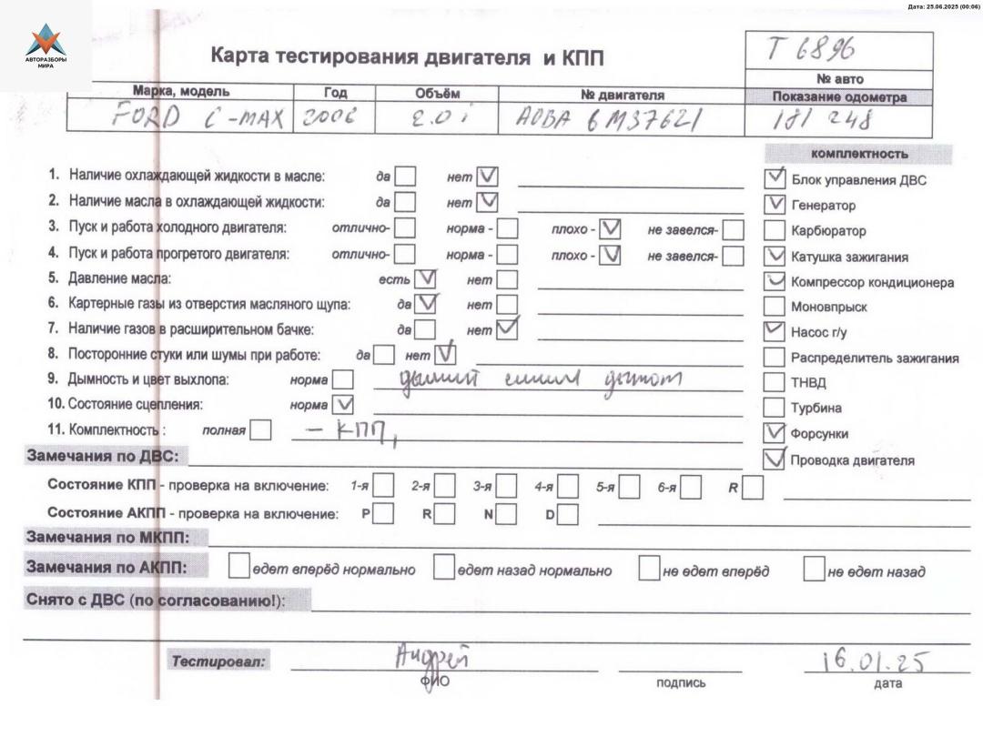 Двигатель (ДВС) Ford C-Max 2006
