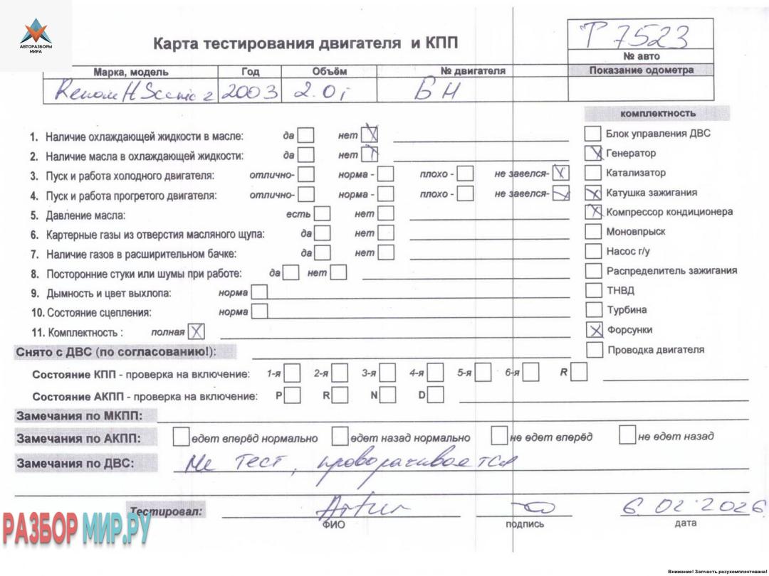 Двигатель (ДВС) Renault Scenic 2 2003