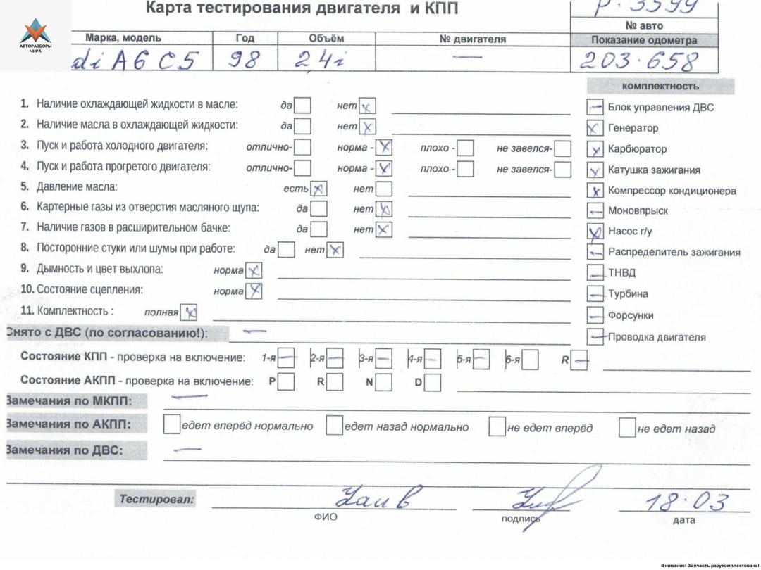 Двигатель (ДВС) Audi A6 4B/C5 1998