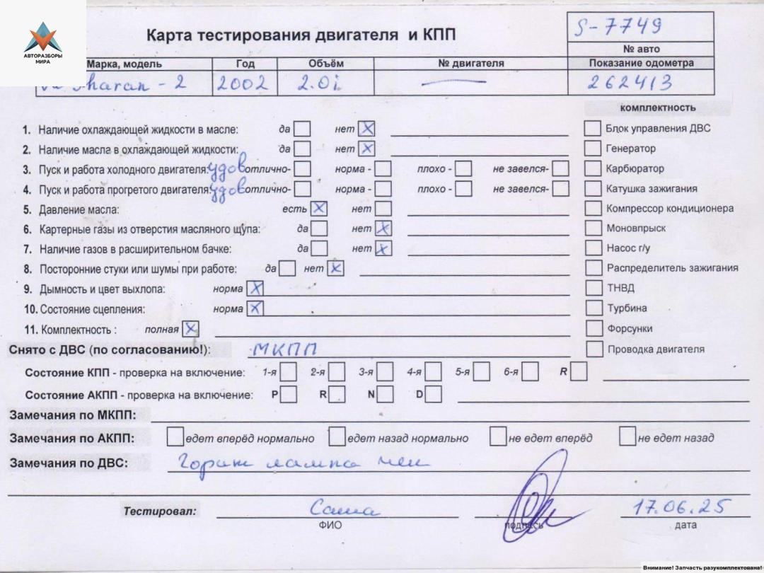 ![двигатель Volkswagen Sharan 1 поколение [рестайлинг] 2002, 2.0 л., бензин, МКПП, ATM - фото №6](https://st.razbor-mir.ru/gallery/version/car-part/3302113/7081610/preview.jpg)
