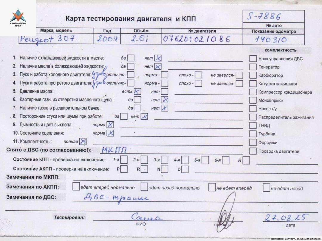 Двигатель (ДВС) Peugeot 307 2004
