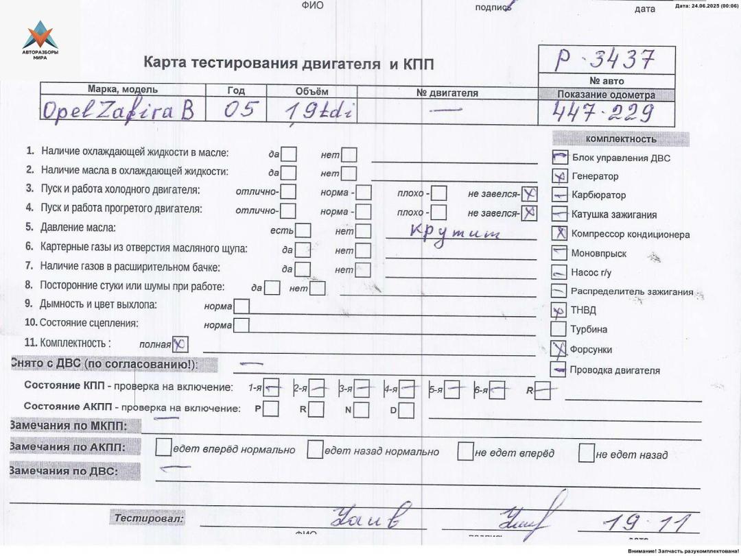 | Номер запчасти | Z19DTH |