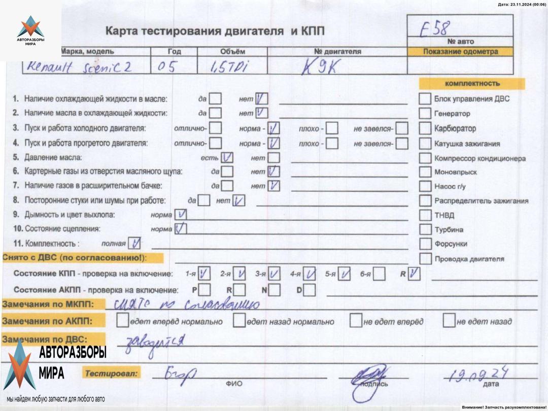 Б/Н (цена без навесного), Внимание! Запчасть разукомплектована. Сняты запчасти: Датчик положения распредвала, Стартер, Форсунка топливная, Турбина, Форсунка топливная, Патрубок турбины, Кожух ГРМ, Компрессор кондиционера, Механизм натяжения ремня, цепи, Патрубок радиатора, Клапан EGR (рециркуляции выхлопных газов), Рампа (рейка) топливная, Генератор, Патрубок, Щуп двигателя масляный , Форсунка топливная, Кожух ГРМ, Маховик, Форсунка топливная, ТНВД, Корпус термостата, Насос вакуумный, Патрубок радиатора