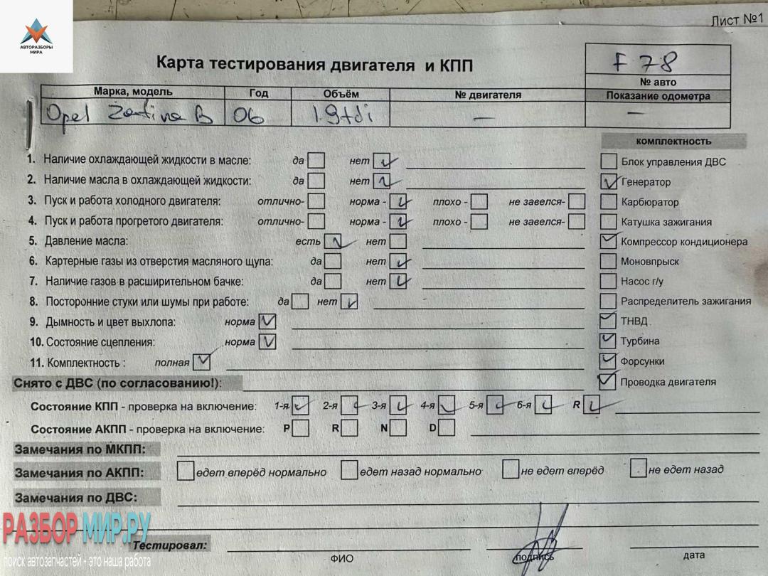 | Модель | Zafira |