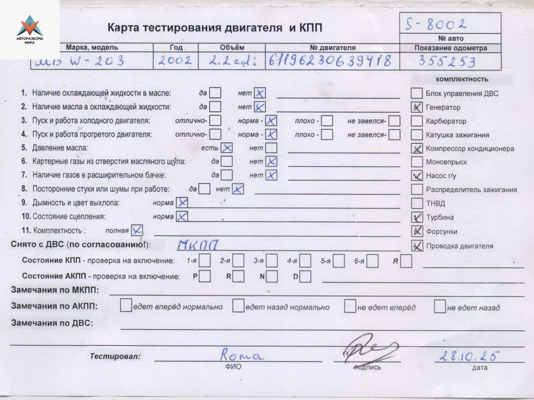 | Номер запчасти | 611962, OM611.962, OM611 |