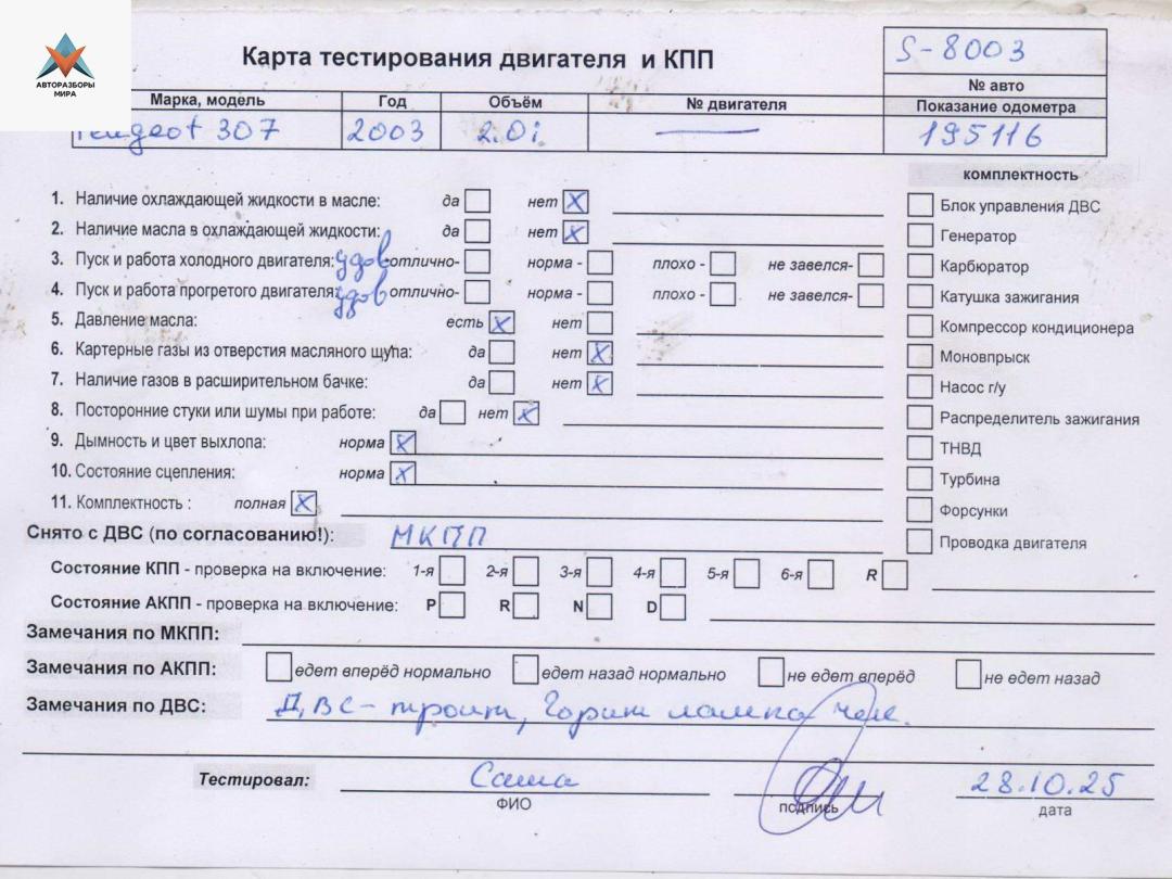 Двигатель (ДВС) Peugeot 307 2003