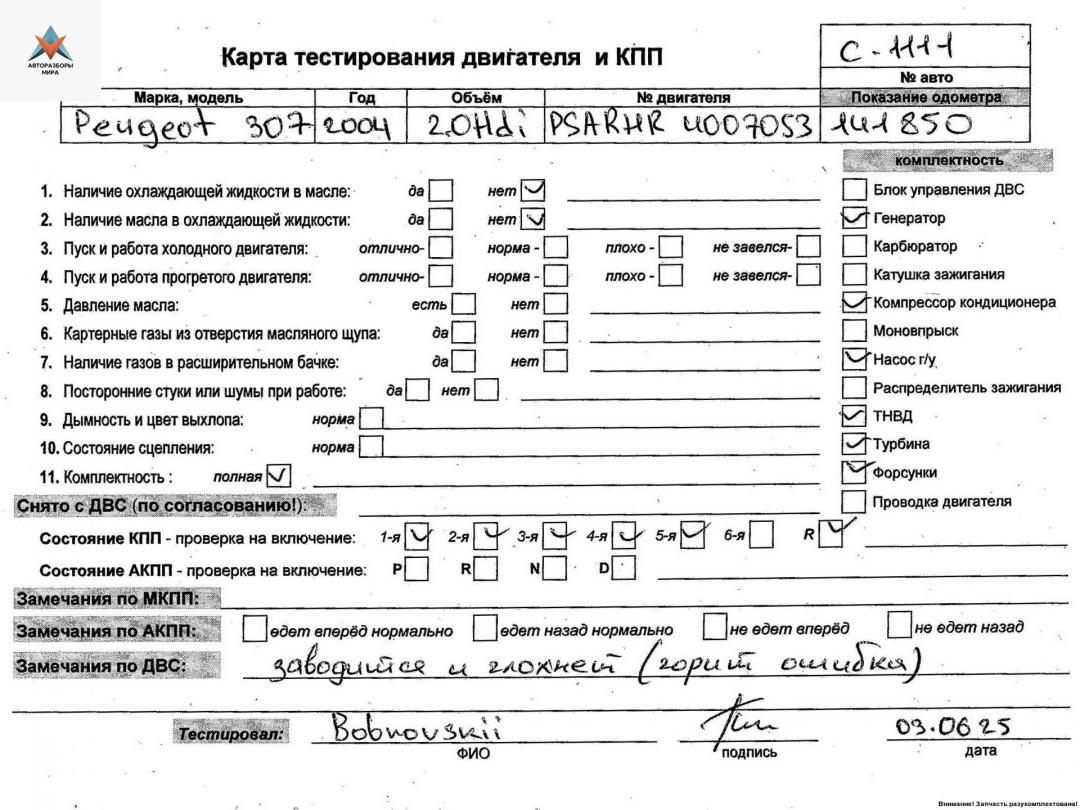 Другие запчасти Peugeot 307 1 поколение