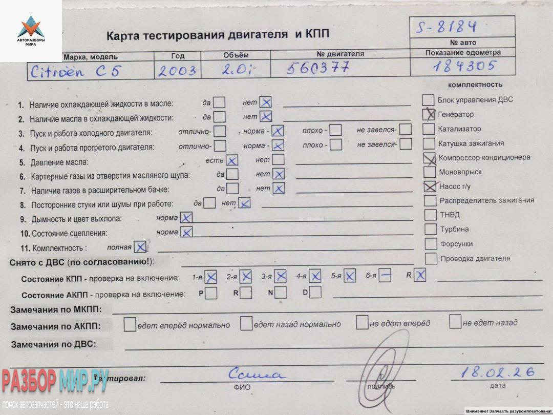 Двигатель (ДВС) Citroen C5 2003