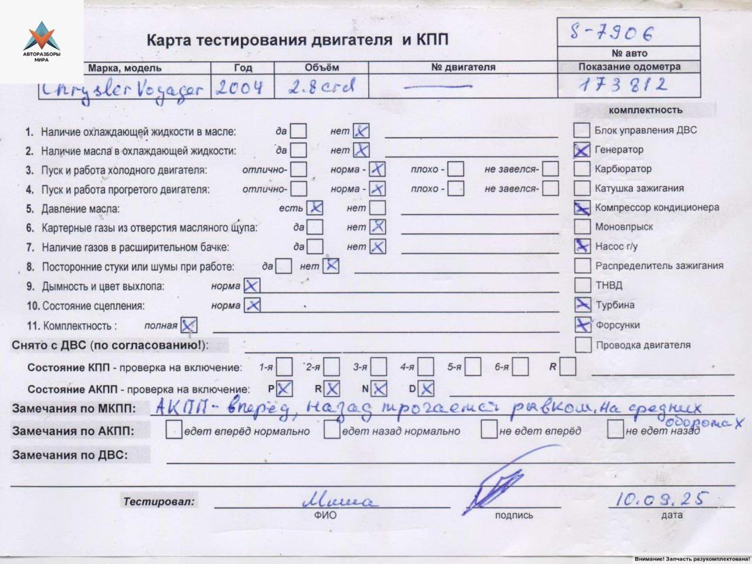 ![двигатель Chrysler Voyager 4 поколение [рестайлинг] 2004, 2.8 л., дизель, АКПП, ENR, R2816C5.05A - фото №8](https://st.razbor-mir.ru/gallery/version/car-part/3383781/7196804/preview.jpg)