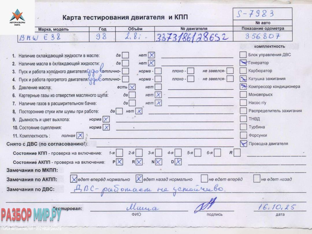 ![двигатель BMW 7 серия E38 [рестайлинг] 1999, 2.8 л., бензин, АКПП, 286S2, M52TUB28 - фото №10](https://st.razbor-mir.ru/gallery/version/car-part/3454215/7618054/preview.jpg)