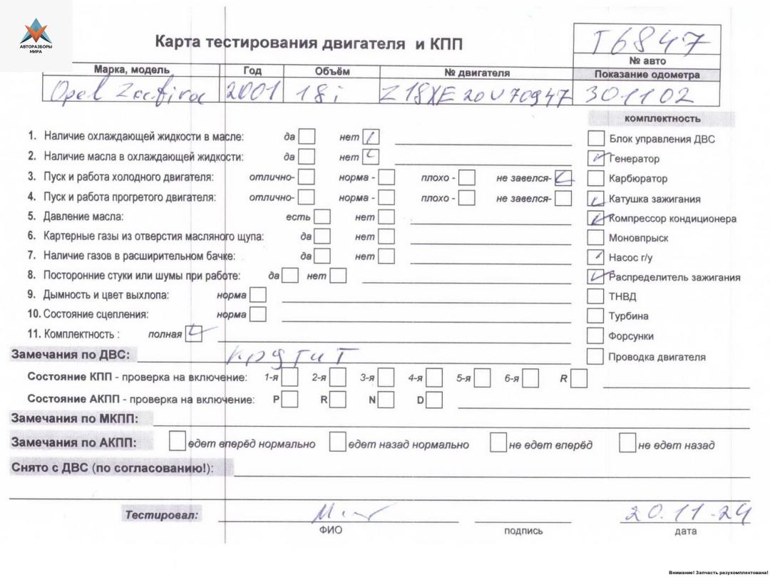 Z18XE 20V70947 (цена без навесного)НА РАЗБОР