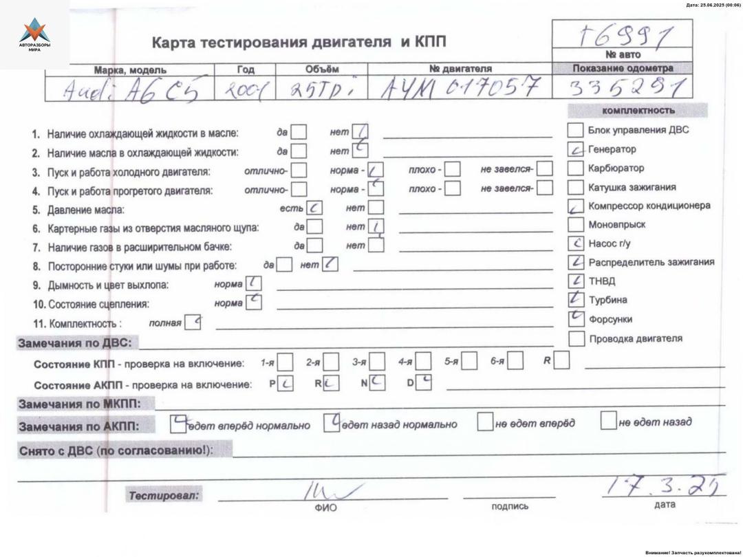 ![двигатель Audi A6 4B/C5 [рестайлинг] 2002, 2.5 л., дизель, АКПП, AYM - фото №6](https://st.razbor-mir.ru/gallery/version/car-part/3251795/6638374/preview.jpg)