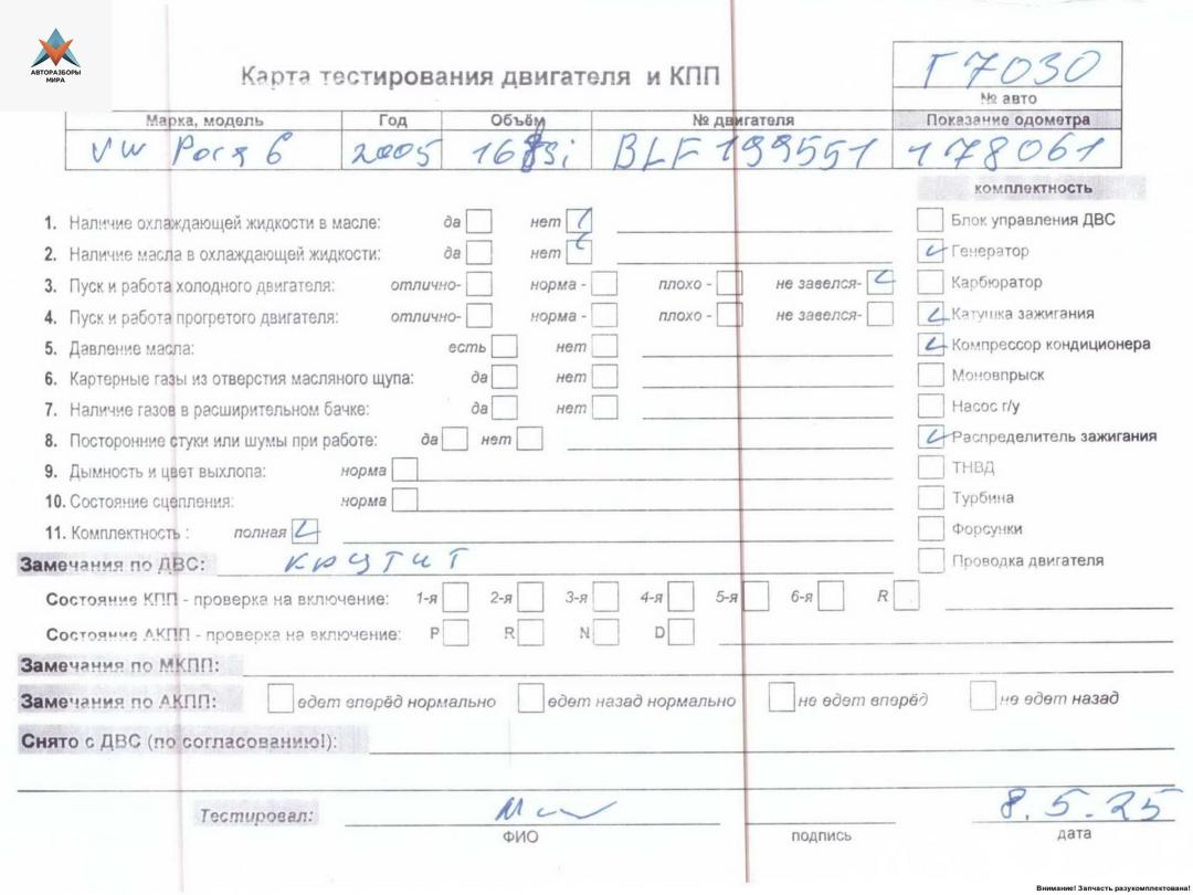 Двигатель (ДВС) Volkswagen Passat B6 2005