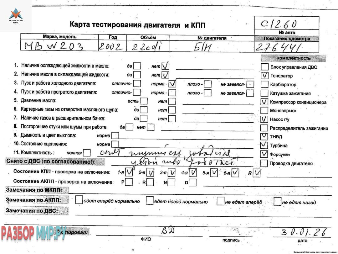 Б/Н (цена без навесного), Внимание! Запчасть разукомплектована. Сняты запчасти: КПП 6-ст. механическая, Стартер
