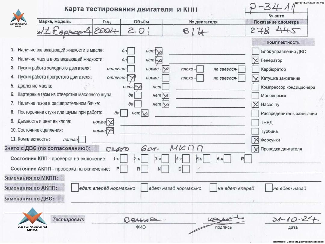 Двигатель (ДВС) Renault Espace 4 2004