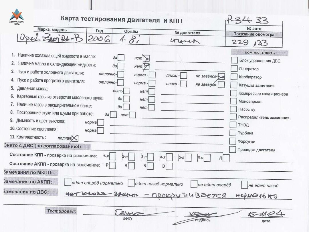 | Номер запчасти | Z18XER |