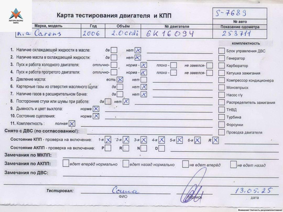 Двигатель (ДВС) Kia Carens 3 2006