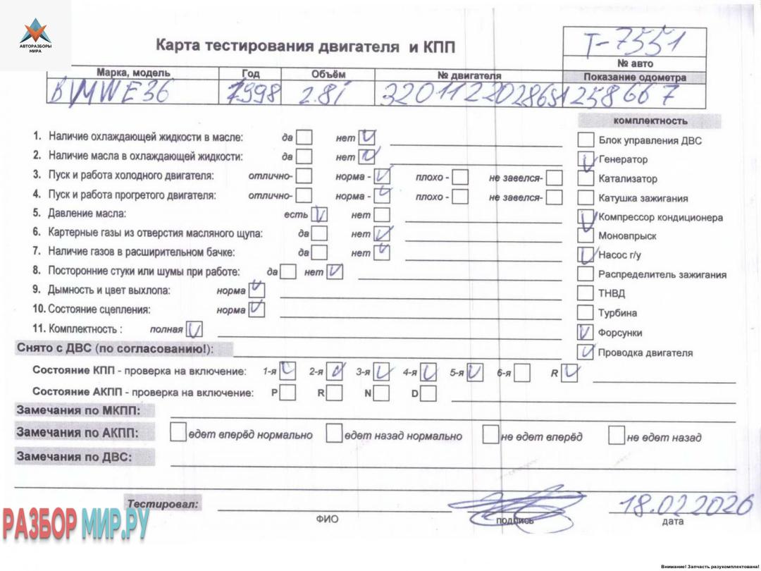 ![двигатель BMW 3 серия E36 [рестайлинг] 1998, 2.8 л., бензин, МКПП, 286S1, M52B28 - фото №8](https://st.razbor-mir.ru/gallery/version/car-part/3529903/7773224/preview.jpg)