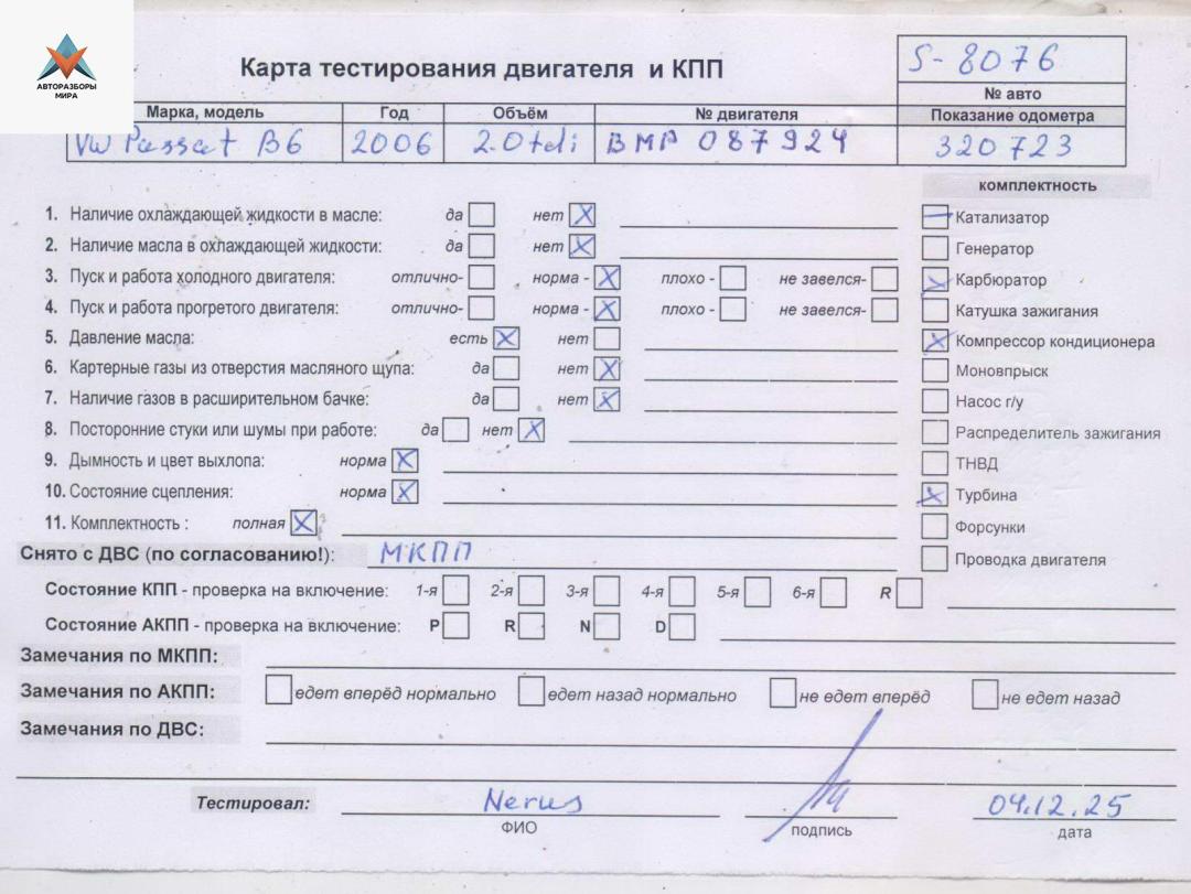 Двигатель (ДВС) Volkswagen Passat B6 2006