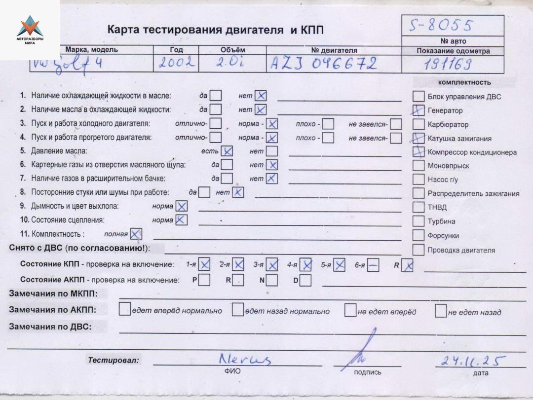 Двигатель (ДВС) Volkswagen Golf 4 2002