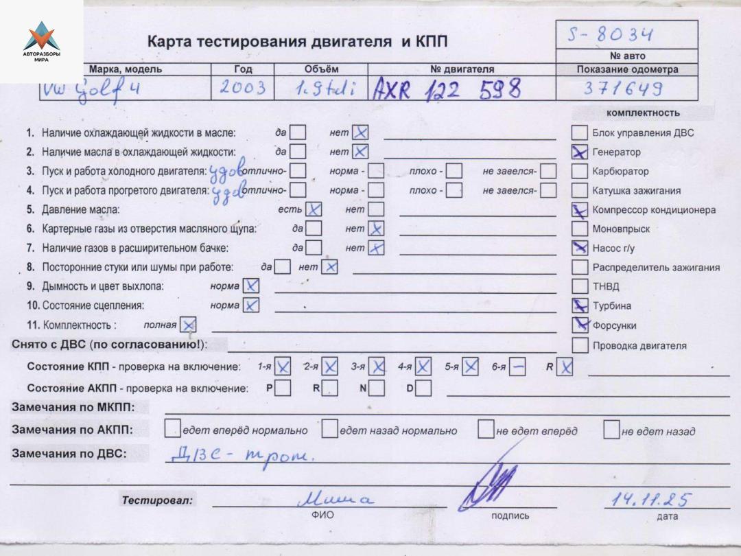 Двигатель (ДВС) Volkswagen Golf 4 2003
