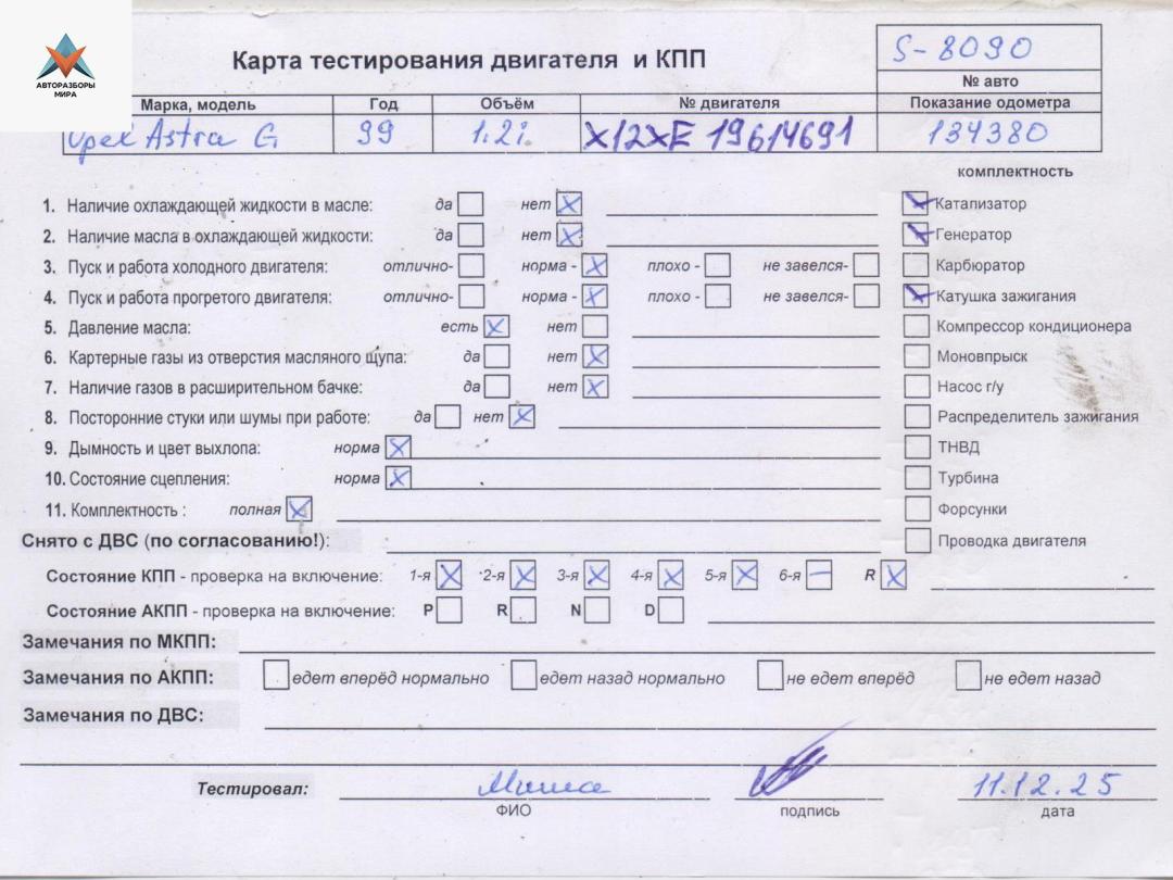 Двигатель (ДВС) Opel Astra G 1999