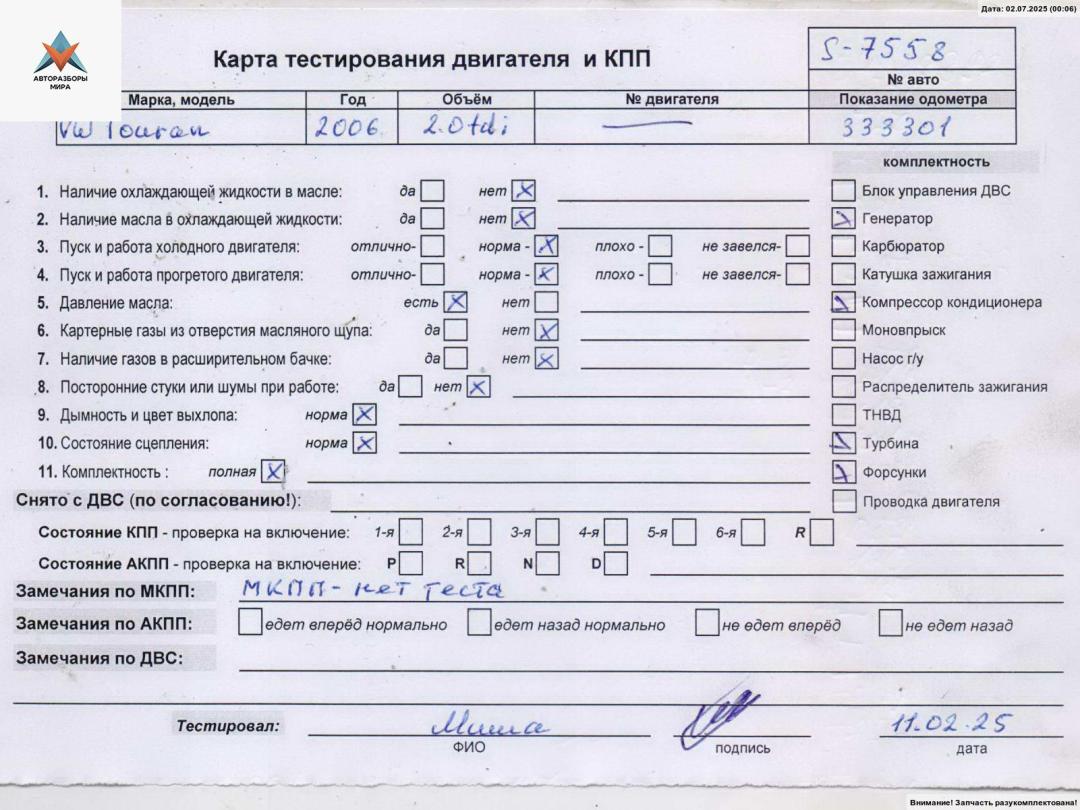 ![двигатель Volkswagen Touran 1 поколение [рестайлинг] 2006, 2.0 л., дизель, МКПП, BMM - фото №5](https://st.razbor-mir.ru/gallery/version/car-part/3235552/6683975/preview.jpg)