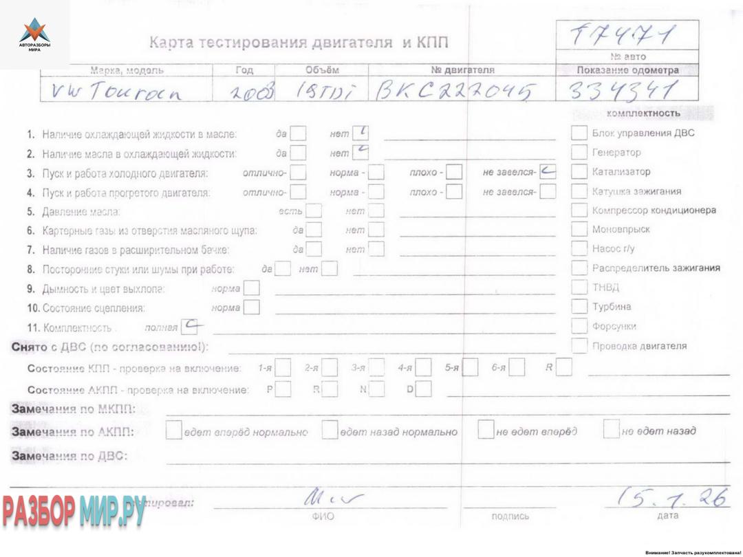 BKC 222045 (цена без навесного), Внимание! Запчасть разукомплектована. Сняты запчасти: КПП 6-ст. механическая, Стартер, Патрубок отопителя (печки), Генератор, Датчик давления наддува, Заслонка дроссельная, Турбина, Охладитель отработанных газов, Патрубок радиатора, Патрубок радиатора, Патрубок интеркулера, Патрубок интеркулера, Патрубок воздушного фильтра, Патрубок турбины, Трубка масляная турбины, Клапан EGR (рециркуляции выхлопных газов), Трубка топливная, Форсунка топливная, Форсунка топливная, Форсунка