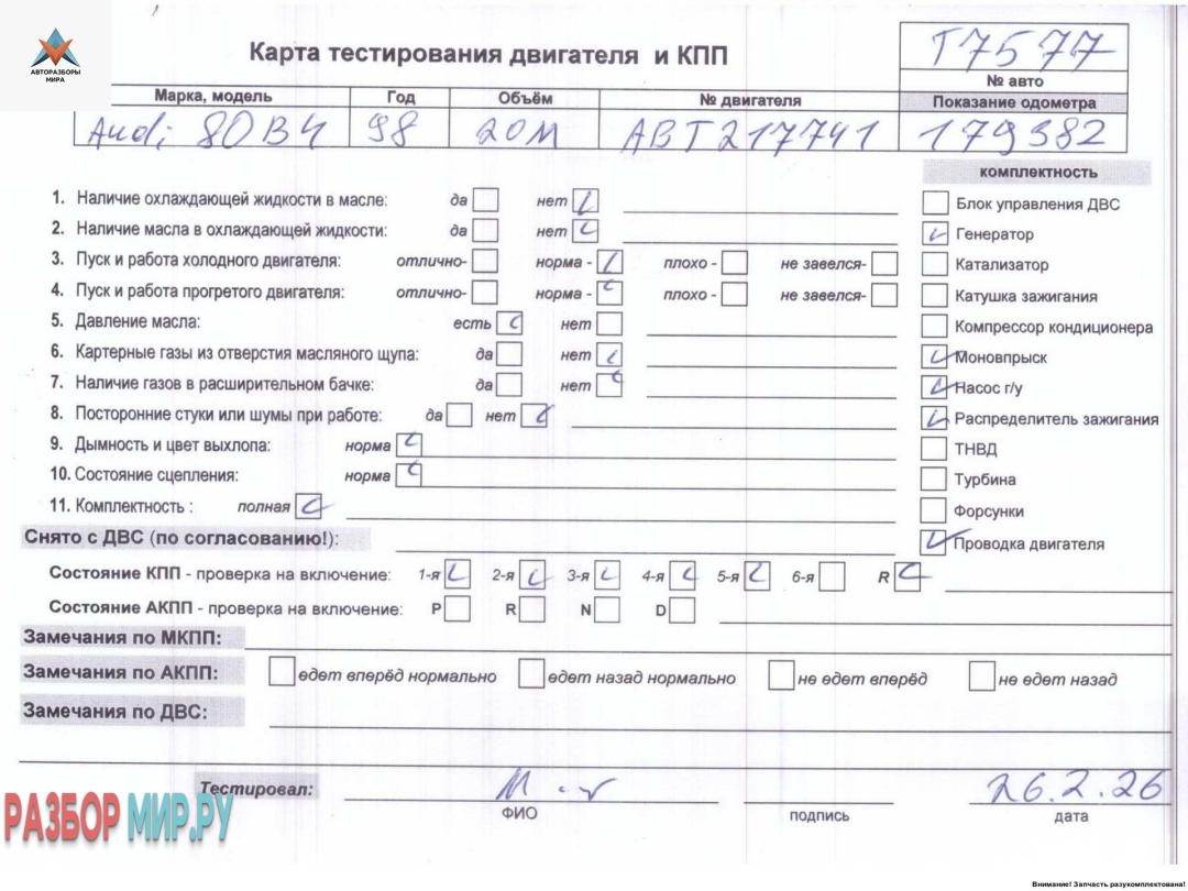 ABT 217741 (цена без навесного), Внимание! Запчасть разукомплектована. Сняты запчасти: КПП 5-ст. механическая, Стартер