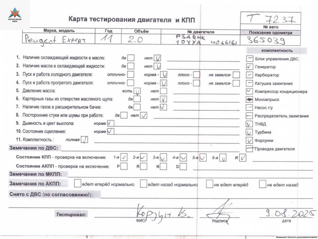 | Номер запчасти | RHK, DW10UTED4 |