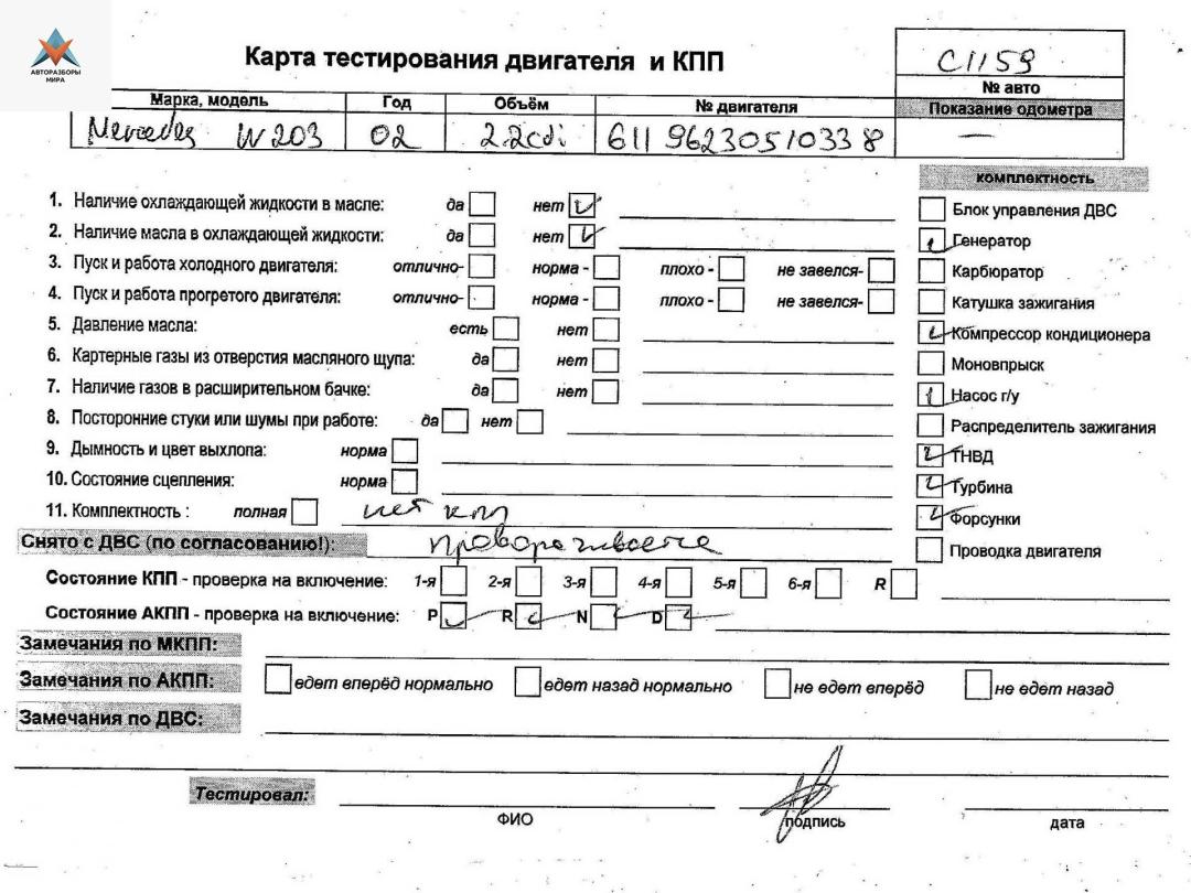 | Номер запчасти | 611962, OM611.962, OM611 |