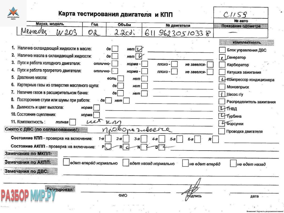 Другие запчасти Mercedes-Benz C-Класс W203/S203/CL203