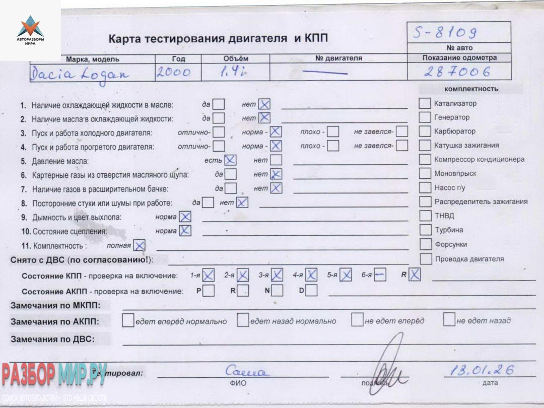 Другие запчасти Dacia (Renault) Logan
