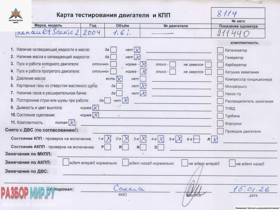 Б/Н (цена без навесного), Внимание! Запчасть разукомплектована. Сняты запчасти: КПП 5-ст. механическая, Стартер, Датчик положения коленвала, Заслонка дроссельная, Датчик кислородный (лямбда-зонд), Компрессор кондиционера, Генератор