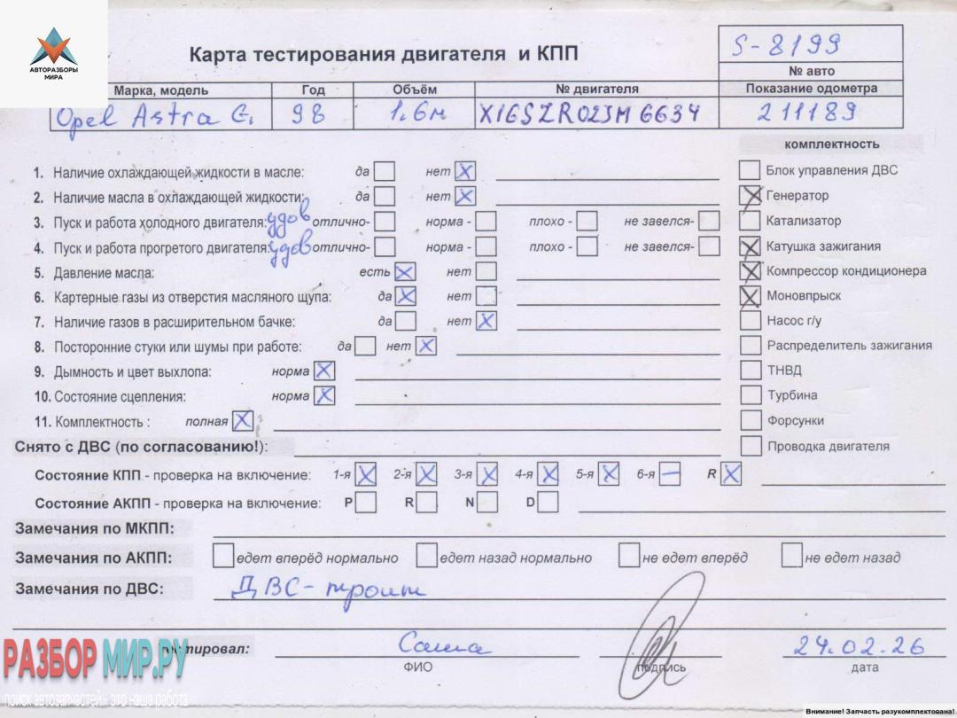 X16SZR 02JM6634 (цена без навесного), Внимание! Запчасть разукомплектована. Сняты запчасти: Стартер, КПП 5-ст. механическая