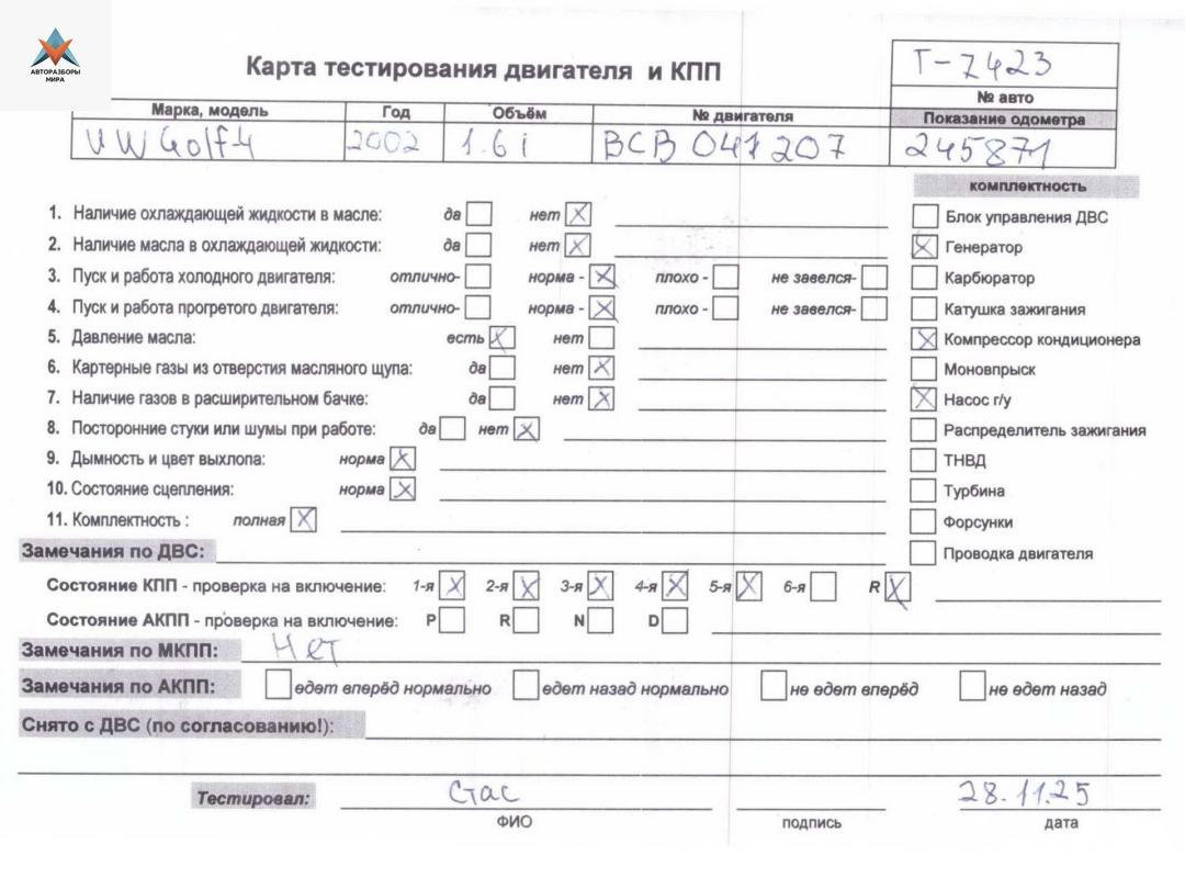 Двигатель (ДВС) Volkswagen Golf 4 2002