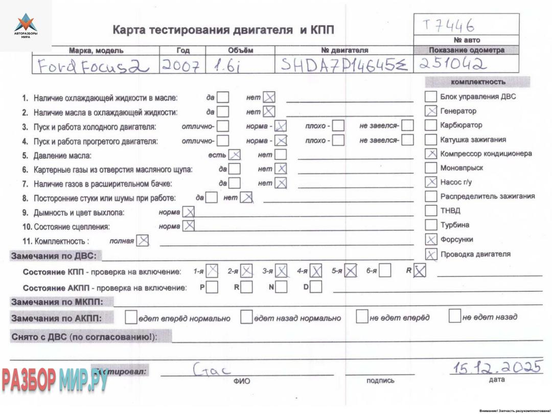 ![двигатель Ford Focus 2 поколение [рестайлинг] 2007, 1.6 л., i, бензин, МКПП, SHDA - фото №7](https://st.razbor-mir.ru/gallery/version/car-part/3502685/7769186/preview.jpg)
