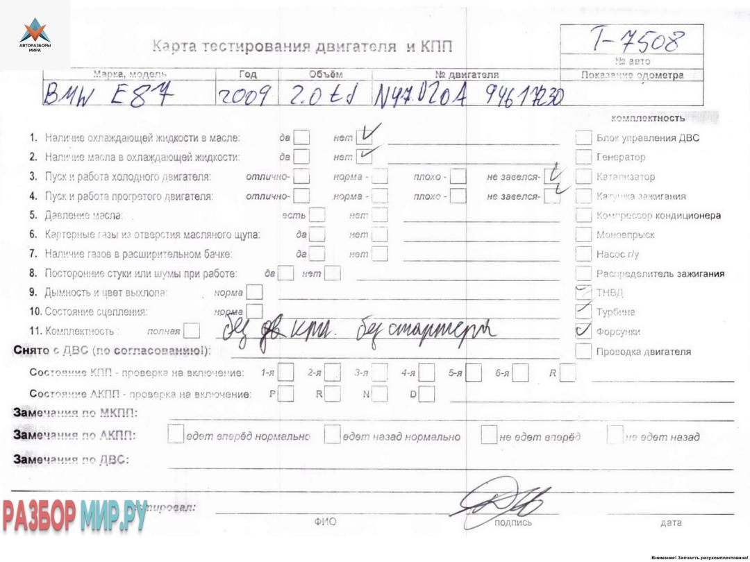 N47D20A 94617230 (цена без навесного), Внимание! Запчасть разукомплектована. Сняты запчасти: Стартер, Стартер, КПП 6-ст. механическая