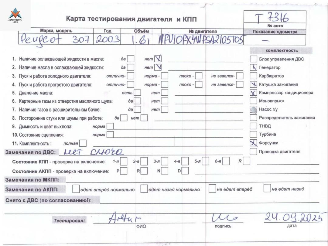 Другие запчасти Peugeot 307 1 поколение
