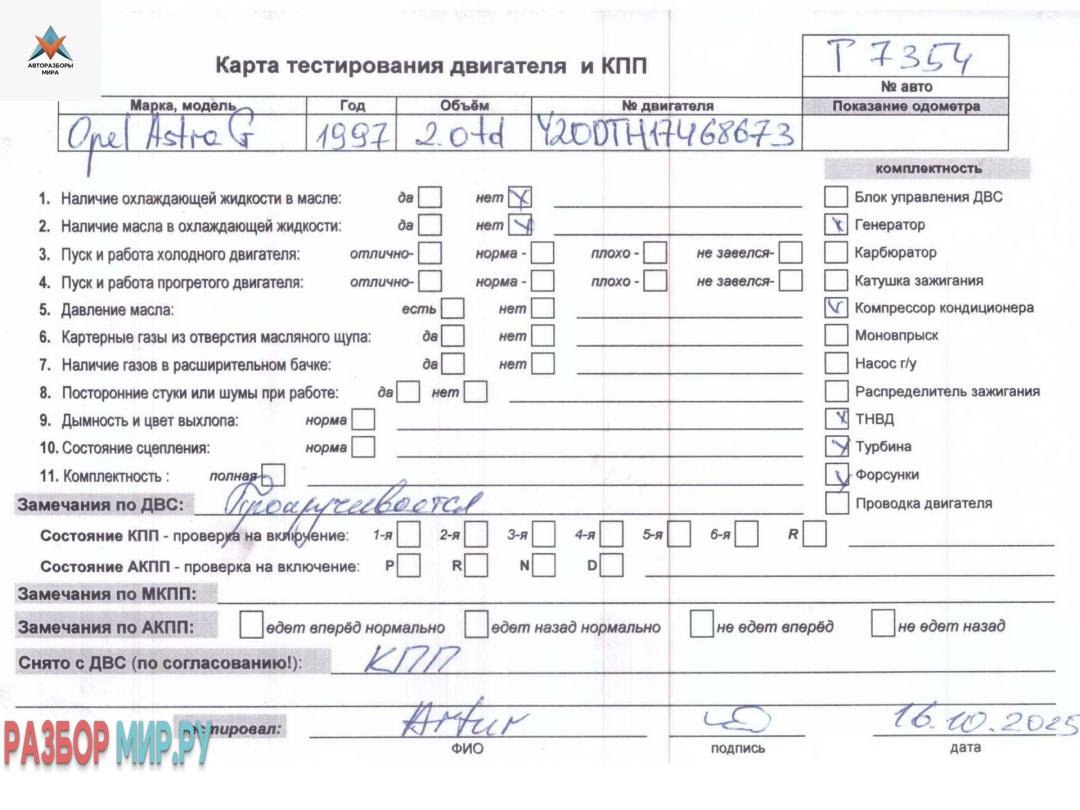 Двигатель (ДВС) Opel Astra G 1999
