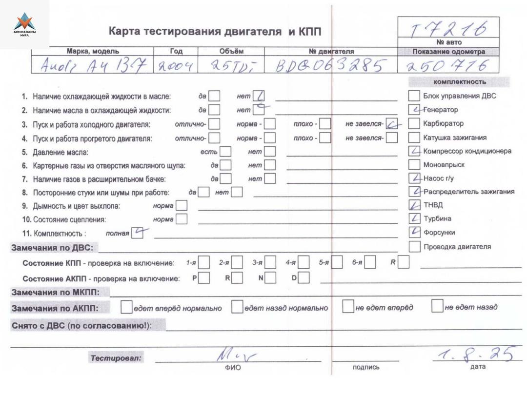 BDG 063285 нет шестерни рапредвала , проблема с грм , наличие дефекта
