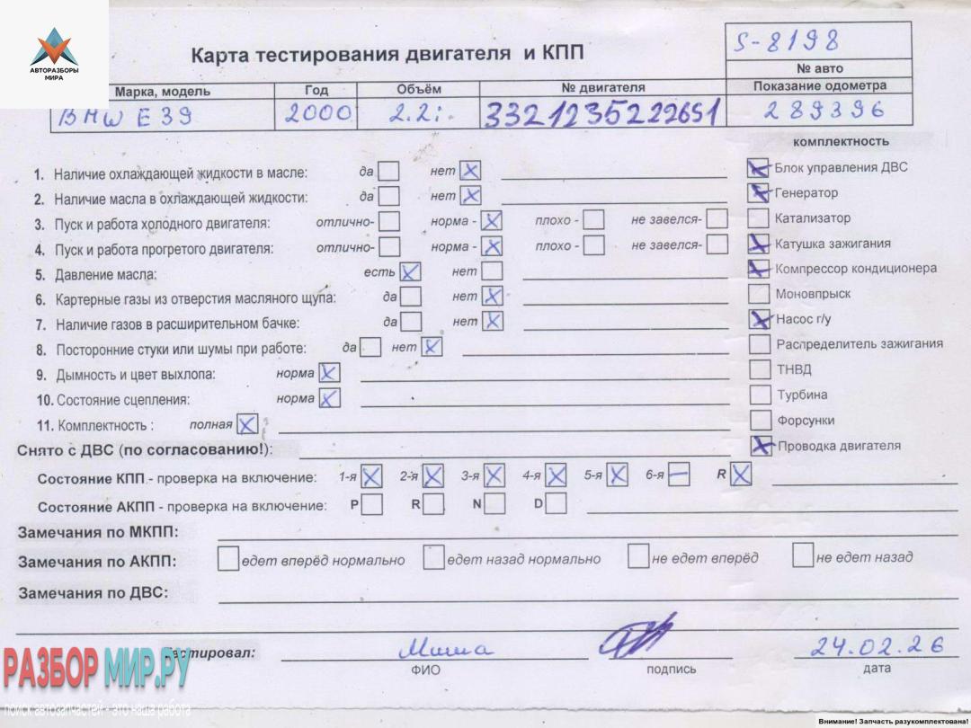 ![двигатель BMW 5 серия E39 [рестайлинг] 2001, 2.2 л., бензин, МКПП, 226S1, M54B22 - фото №1](https://st.razbor-mir.ru/gallery/version/car-part/3534560/7770776/base.jpg)